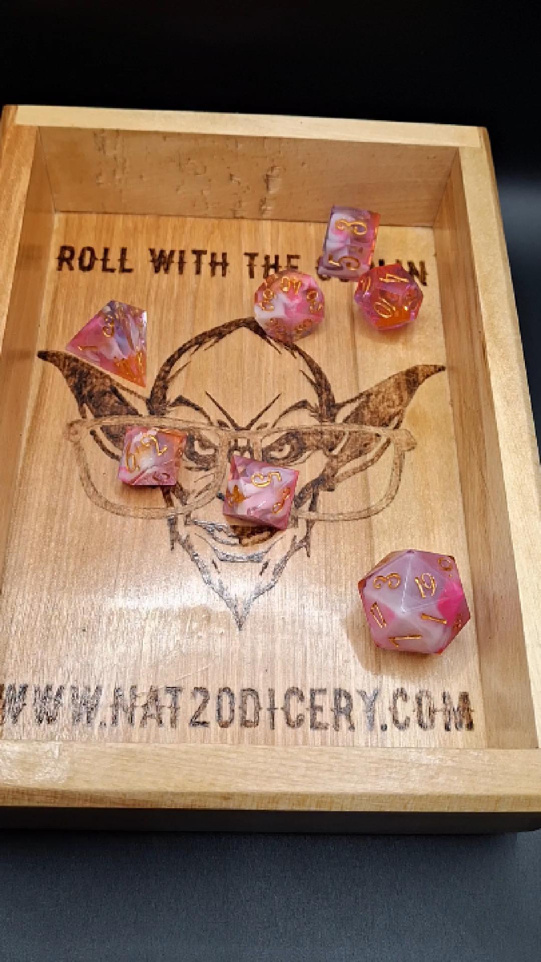Carved from the bones of ancient pine and kissed by flame, the Goblinlight Grove Dice Tray is a handcrafted altar for your dice-rolling rituals. Made from pale, golden-toned pine wood that glows with natural warmth, each tray showcases hypnotic grain patterns—like sun-dappled secrets whispered through the trees.