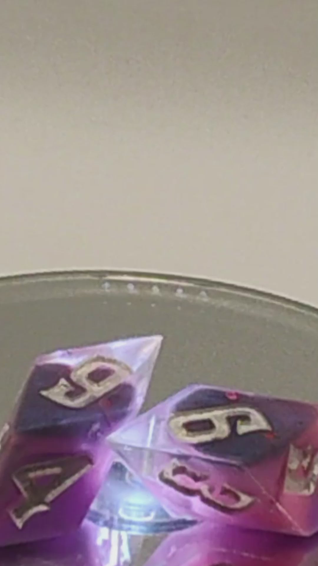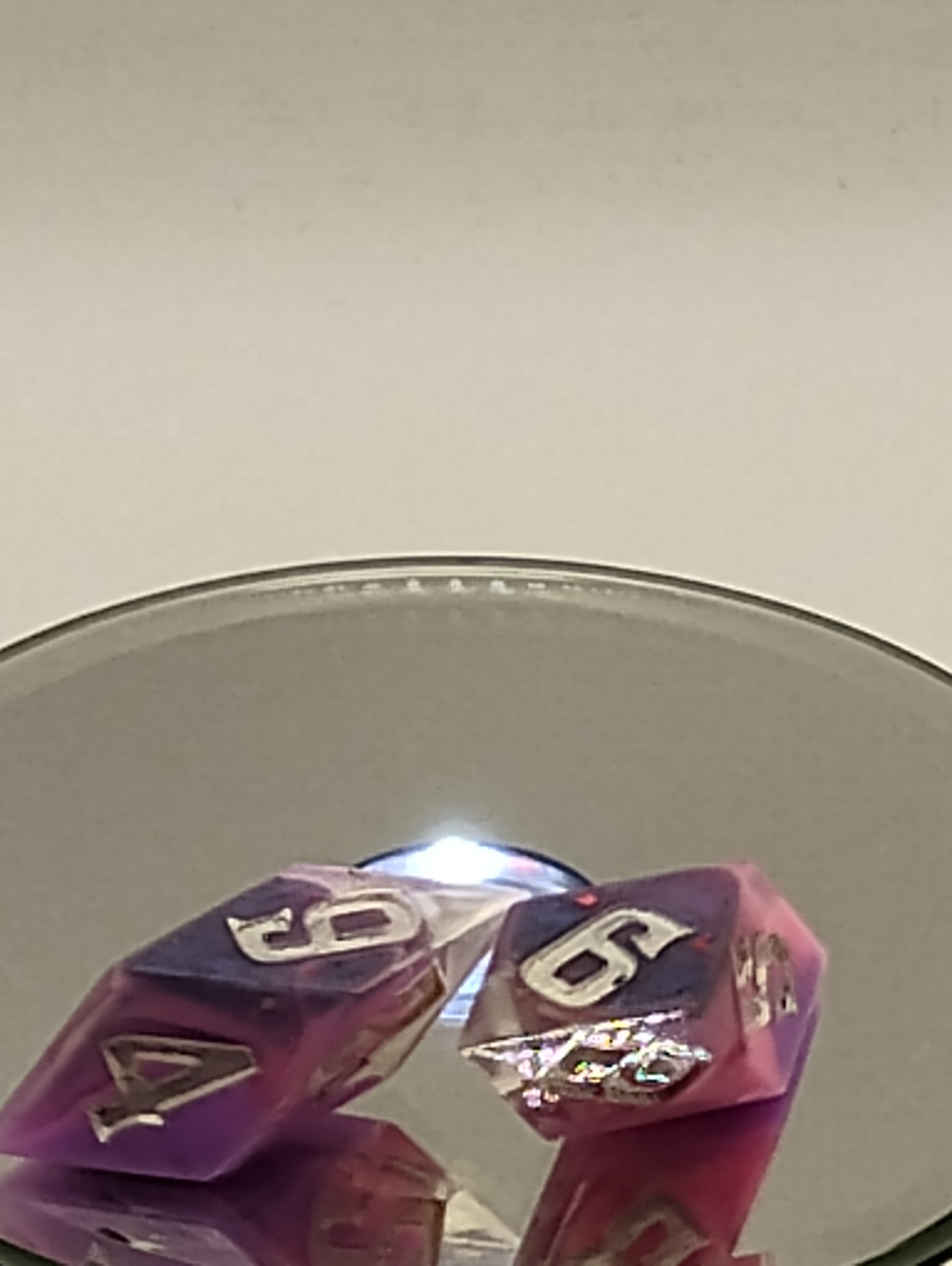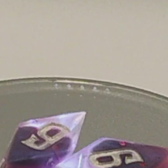 Handmade Rhombic D6 Dice Pair – Enchanted Pink & Purple Whispers | Dark Fantasy TTRPG Dice
