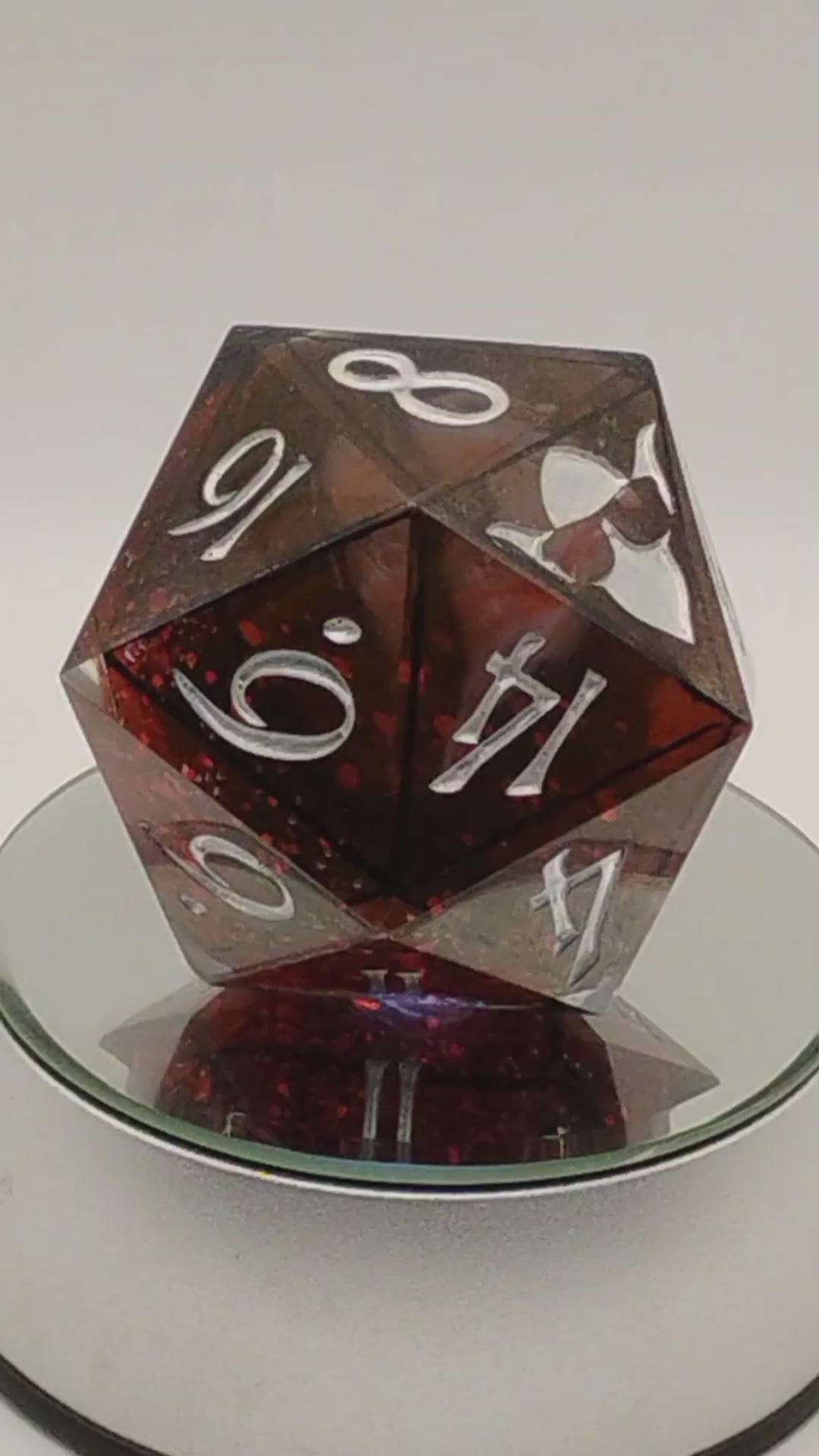 Unveil the Ravenheart Monolith, a 78mm handmade chonk D20 forged for those who revel in dark omens and divine chaos. Within its black-framed edges glows a storm of crimson glitter — swirling like blood beneath glass — encasing a ghostly raven skull suspended in eternal vigil. Each roll feels like a ritual, each glint of red a whisper from beyond the veil.
